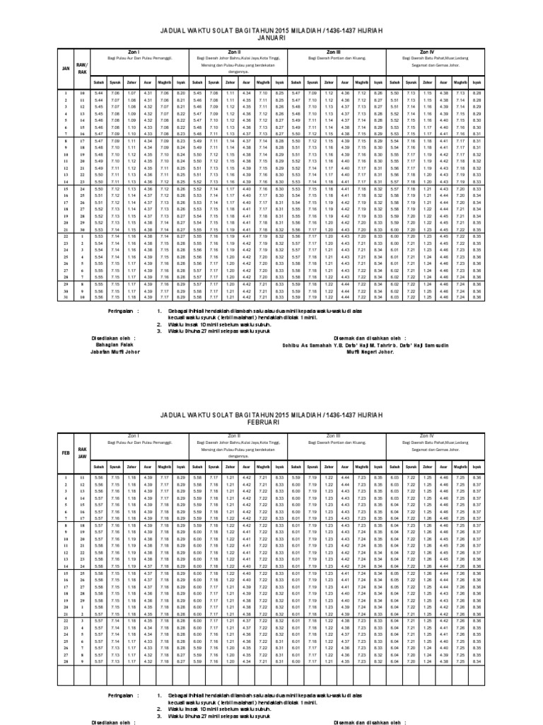 Jadual Waktu Solat Negeri Johor 2015 Pdf